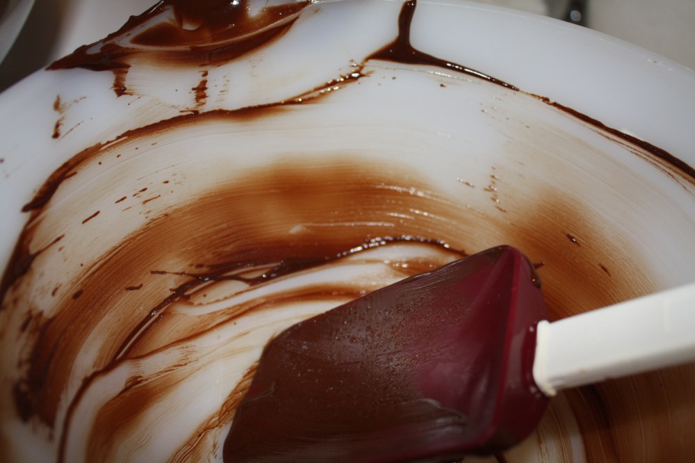 preheat your oven to 325 degrees. Cut up the 4 oz of semisweet chocolate and put it in a microwave safe bowl. Heat it for 30 second intervals until it is mostly melted, then with a spatula stir it until all of the chocolate is melted. (I say this so you don’t over heat or burn the chocolate)
