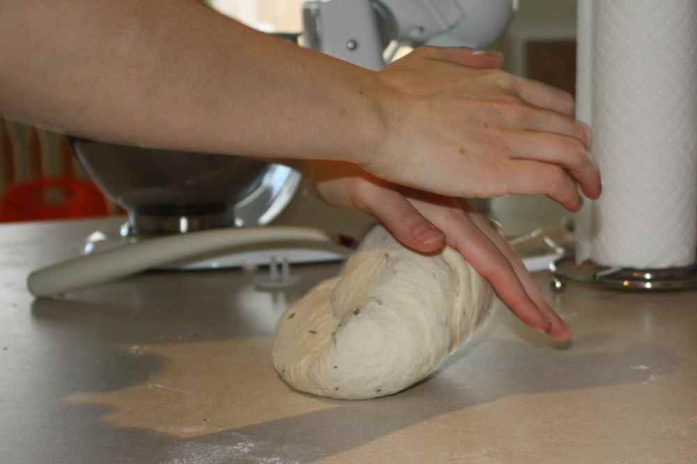 When the dough has fully risen you then need to punch it down. Which just means that you knead it again to push out any of the air created while rising. I don’t use the Kitchen Aid at this point. You can simply knead the dough by hand, taking the dough from the outside of dough ball and pushing it into the middle. Once done, let the dough ball rest on your kitchen counter for 15 minutes. Then you are ready to shape the bread and bake it.